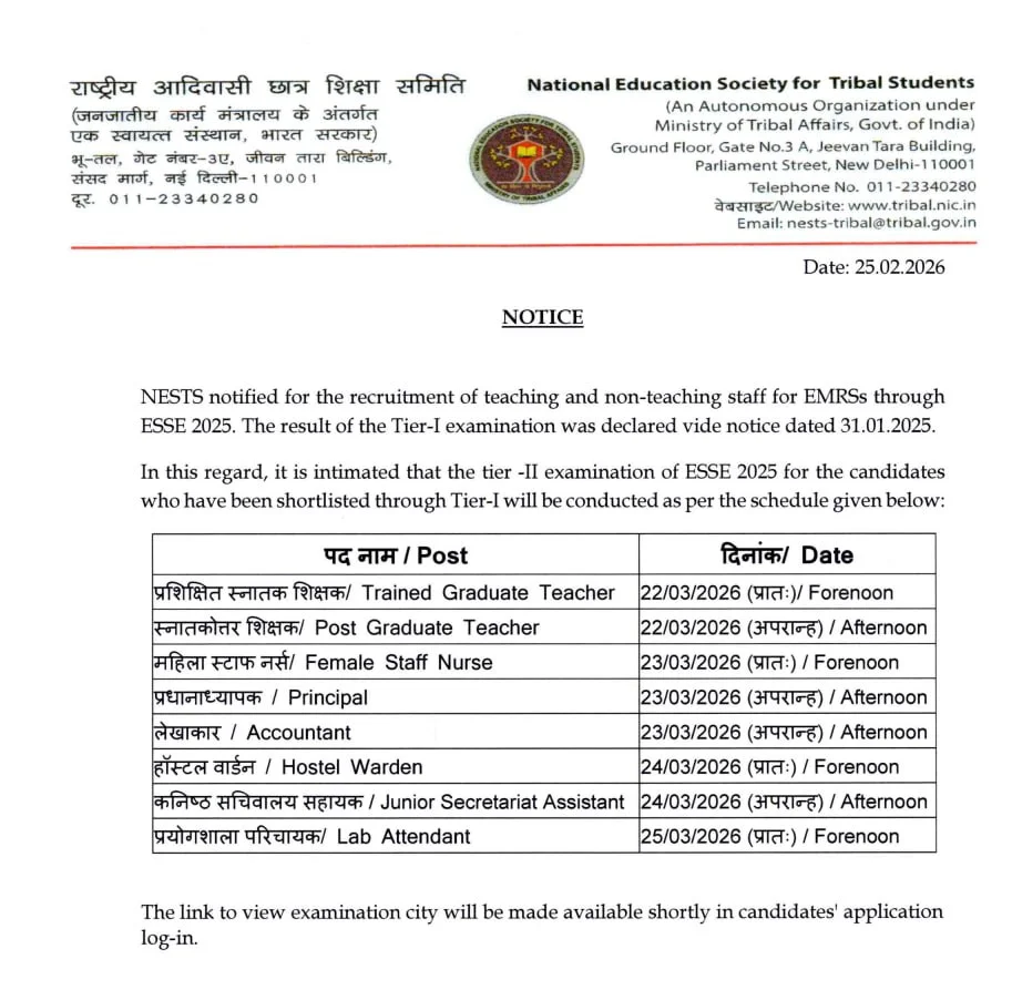 EMRS Teaching & Non-Teaching Tier-II Admit Card 2026