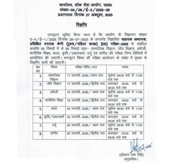 Uttar Pradesh Public Service Commission (UPPSC), has released a notification on official website for the recruitment of Assistant Teacher (TGT) Recruitment 2025.