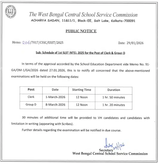 WBSSC Group C and D Examination 2025