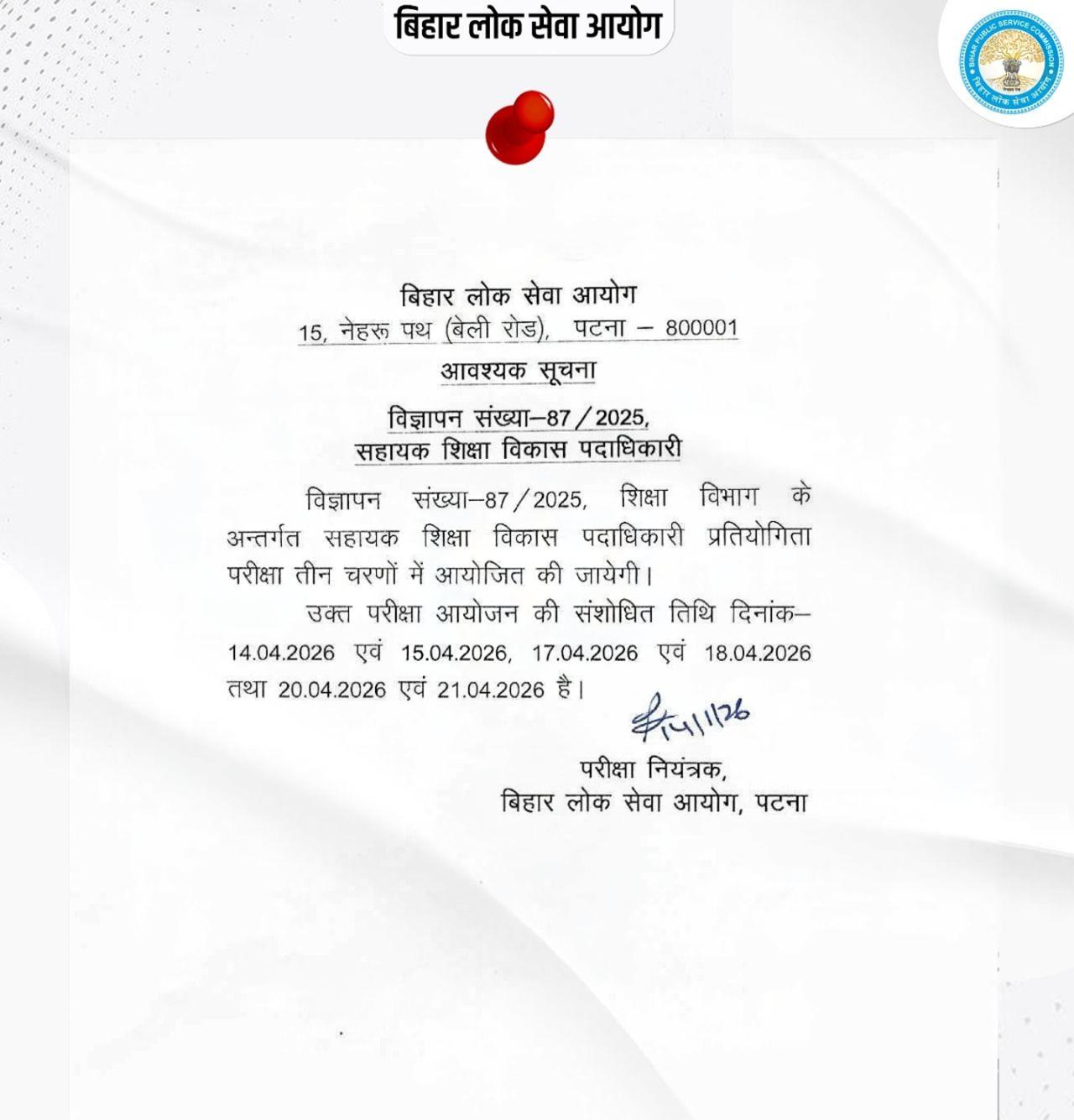 BPSC AEDO Admit Card Date 2026